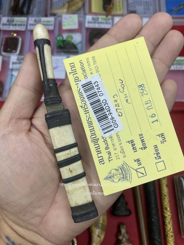 | “ชื่อน้อย แต่ อานุภาพไม่น้อย”   มีดหมอปากกาหลวงพ่อน้อย สายเลือดมีดวัดหนองโพใช้แทนหลวงพ่อเดิมได้ชัวล้าน% ใบทับทิมจันทร์ ผิวหิ้ง มีดหมอ หลวงพ่อน้อย วัดหนองโพ อ.ตาคลี ศิษย์เอก หลวงพ่อเดิม ขนาดปากกาด้ามงาฝักงา สร้าง 2530 จำนวนน้อยประมาณ80 เล่ม ด้ามบรรจุเถ้าอัฐิ เกศา หลวงพ่อเดิมไว้ทุกเล่ม ท่านเป็นลูกศิษย์คนสำคัญและได้เข้ารับการอุปสมบท โดยมีหลวงพ่อเดิม วัดหนองโพ เป็นพระอุปัชฌาย์ โดยยังมีหลวงพ่อรุ่ง วัดหนองสีนวล เป็นพระกรรมวาจาจารย์ หลวงพ่อน้อยท่านคนละเอียดถี่ถ้วนและเขียนอักขระขอมได้สวยงาม หลวงพ่อเดิมจึงได้มอบให้เป็นผู้ลงอักขระพระเครื่อง ตะกรุด และยันต์ต่าง ๆ ตลอดมา..  มีดหมอของท่านตีโดยช่างฉิมเช่นเดียวกับหลวงพ่อเดิม และได้บรรจุอัฐิของหลวงพ่อเดิมไว้ในด้ามมีด พุทธคุณตามใบฝอยครอบจักรวาล ตามแบบฉบับมีดวัดหนองโพ.. | |||||||||||||||